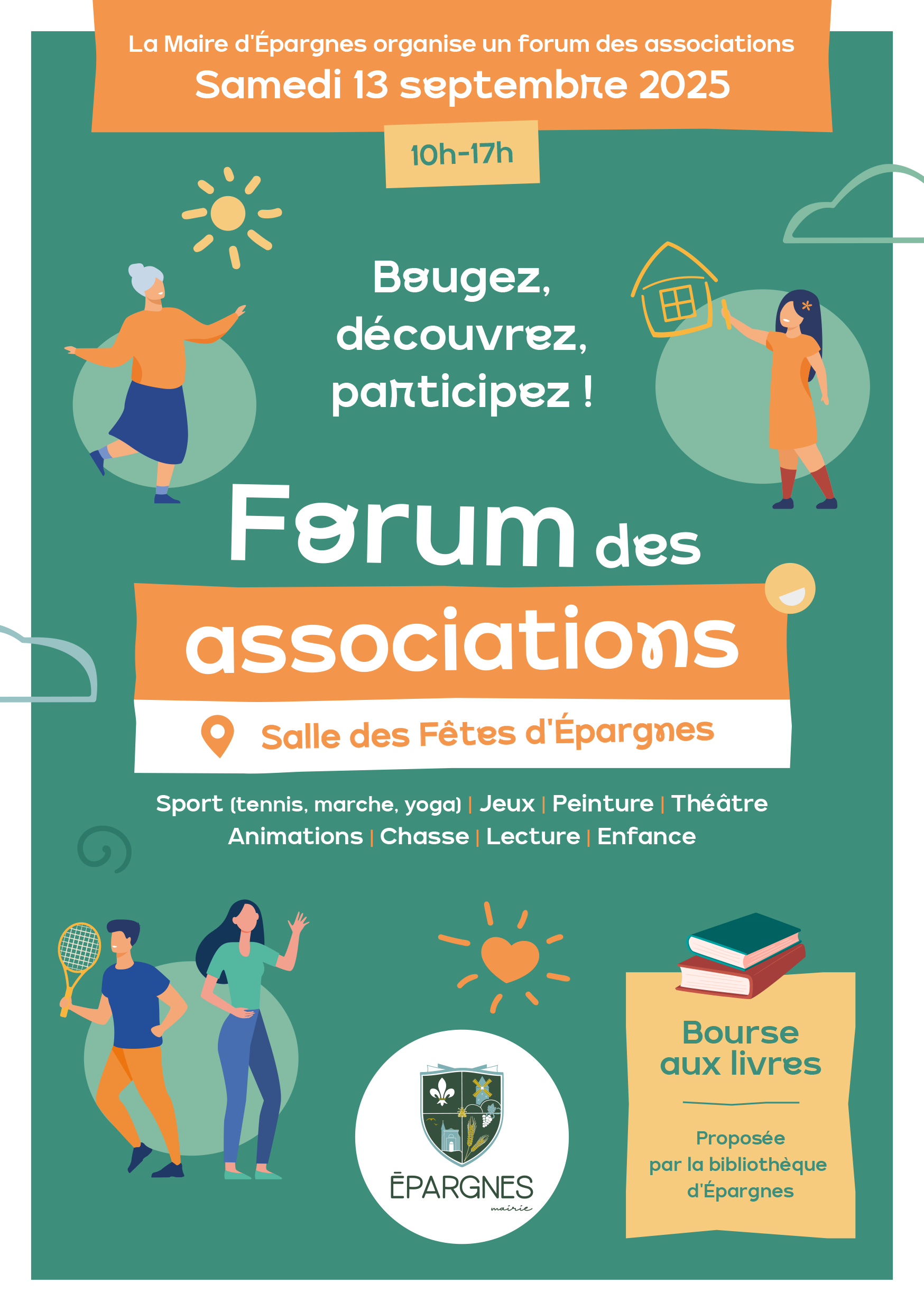 La commune d’Épargnes organise son premier Forum des Associations le samedi 13 septembre 2025 à la salle des fêtes, de 10h à 18h.