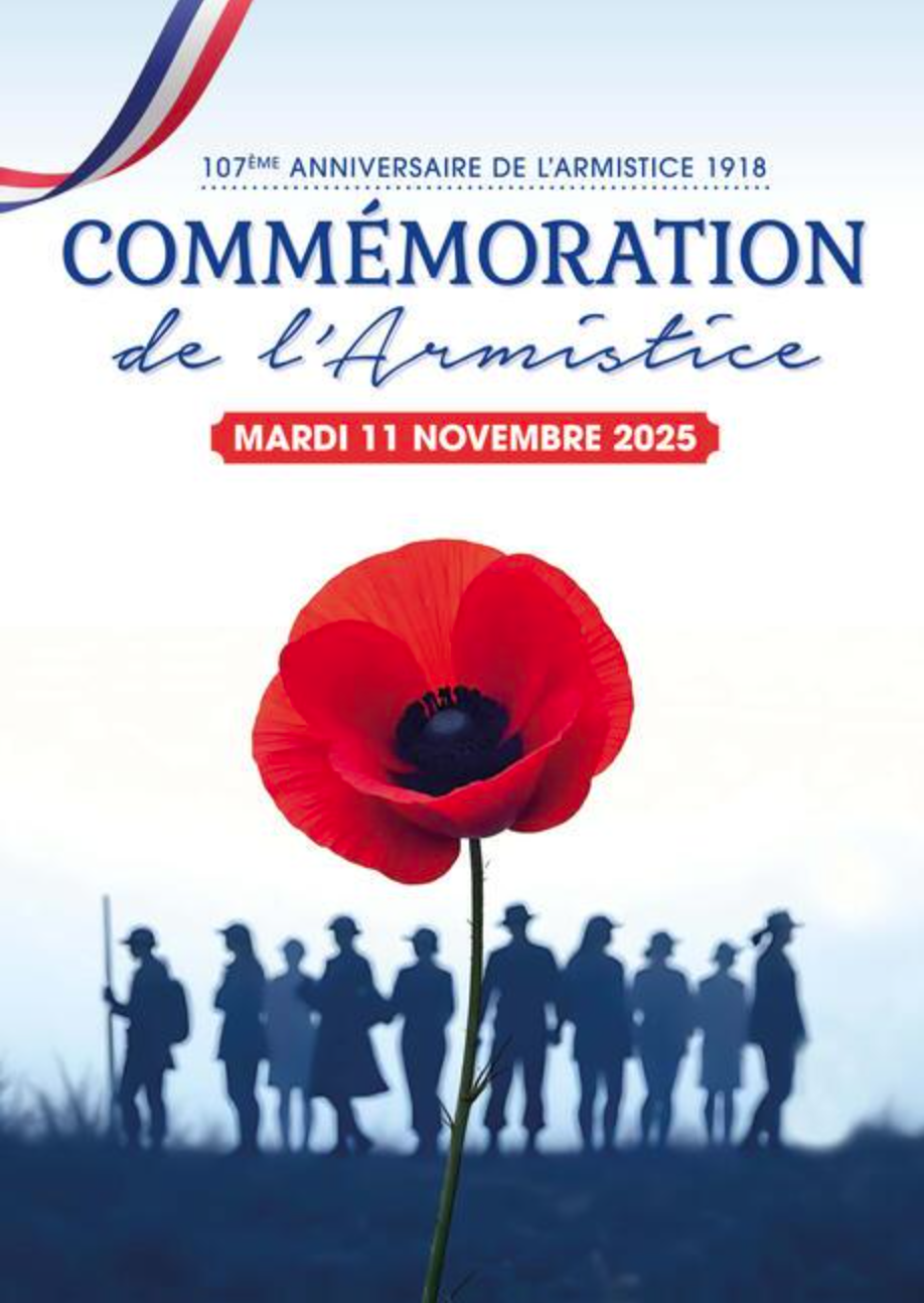 Ce mardi 11 novembre 2025, nous célébrerons le 107ème anniversaire de la signature de l’Armistice de 1918 mettant fin à la Première Guerre mondiale. Nous vous donnons rendez-vous à 12h sur la place de l'église.